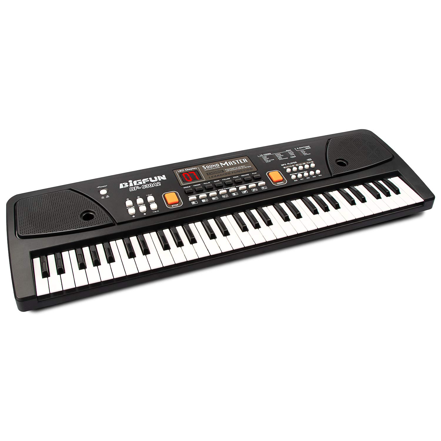 - š¹ćMULTIFUNCTIONAL 61 KEYS PIANOćPlay the piano function + DOUBLE SPEAKERS + ensemble mode + detachable microphone + audio cable jack + keyboard drum + record playback function + Automatic standby sleep function + 16 tones + 10 rhythms + 6 demos + 8 percussions.