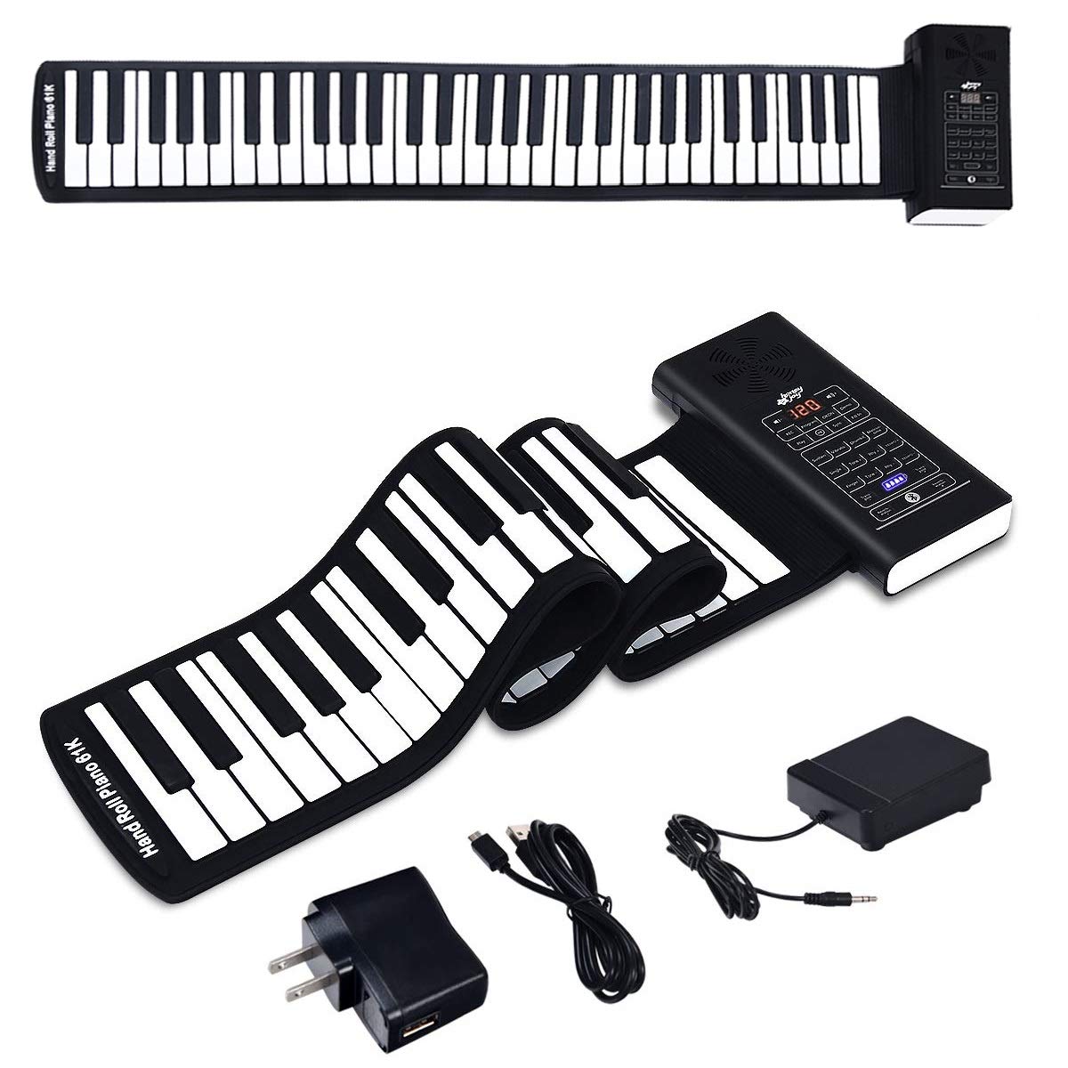 - ⚠️【This product is not for sale in California】♬ MULTI-FUNCTION ♬ 61 Keys hand roll piano build-in loudspeaker,128 International standard tone,128 International standard rhythm.15 demo songs and other sound effects.USB MIDI output,can be connected to the computer for editing music.Support external headset so as not to disturb others.