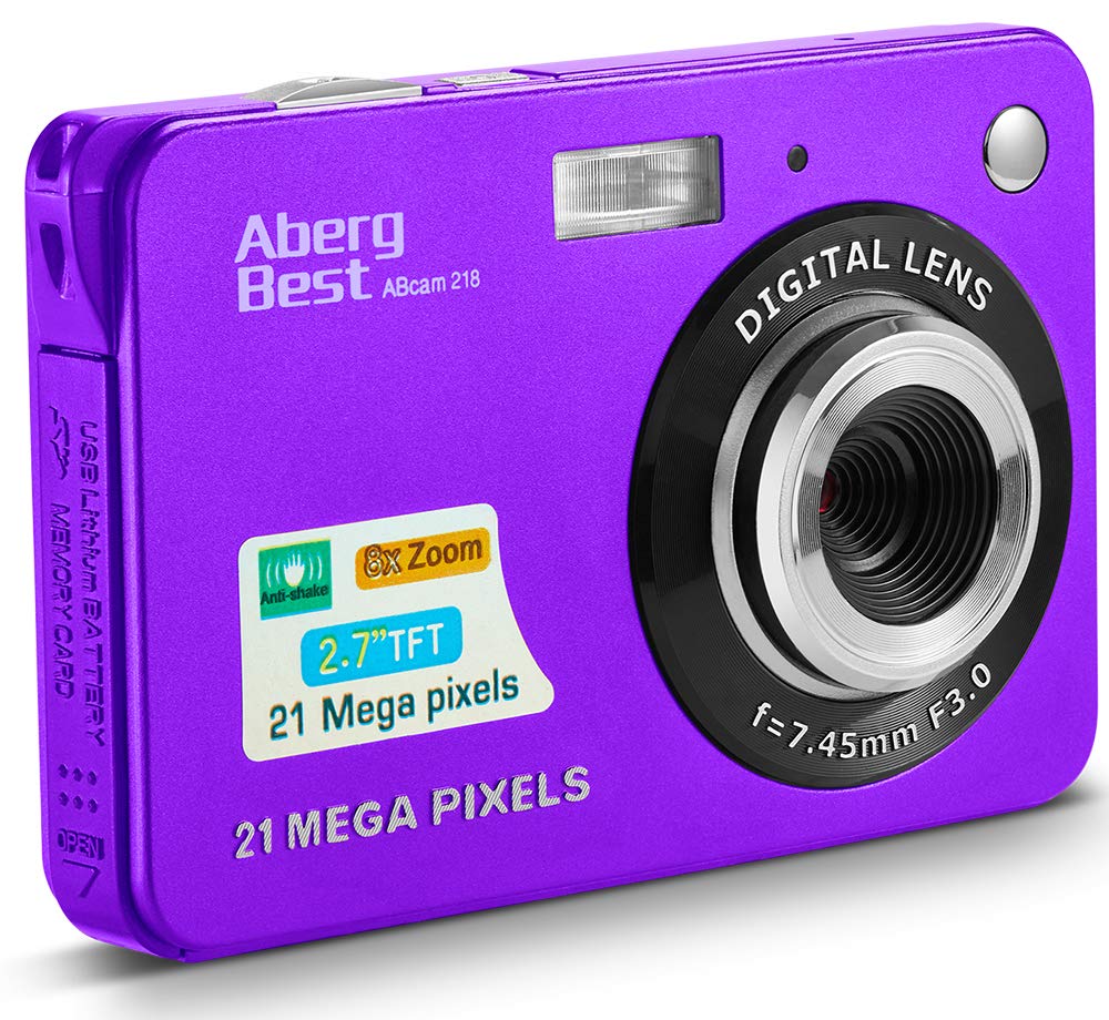 - AbergBest 21 Mega Pixels 2.7" LCD Rechargeable HD Digital Camera Video Camera Digital Students Cameras,Indoor Outdoor for Adult/Seniors/Kid (Purple) costs $34.84