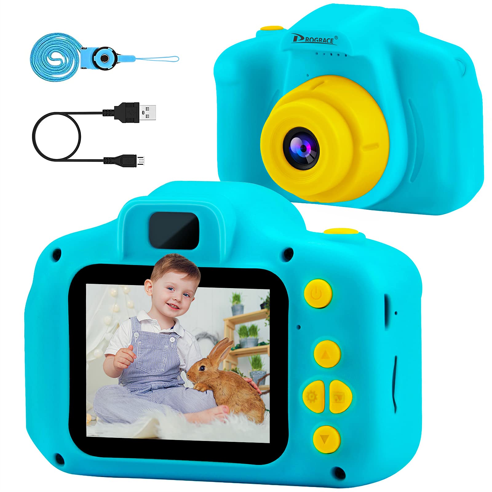- PROGRACE Kids Camera Children Cameras for Boys Birthday Toy Gifts 4-12 Year Old Kid Action Camera for Kids Toddler Video Recorder 1080P IPS 2 Inch Blue costs $16.82