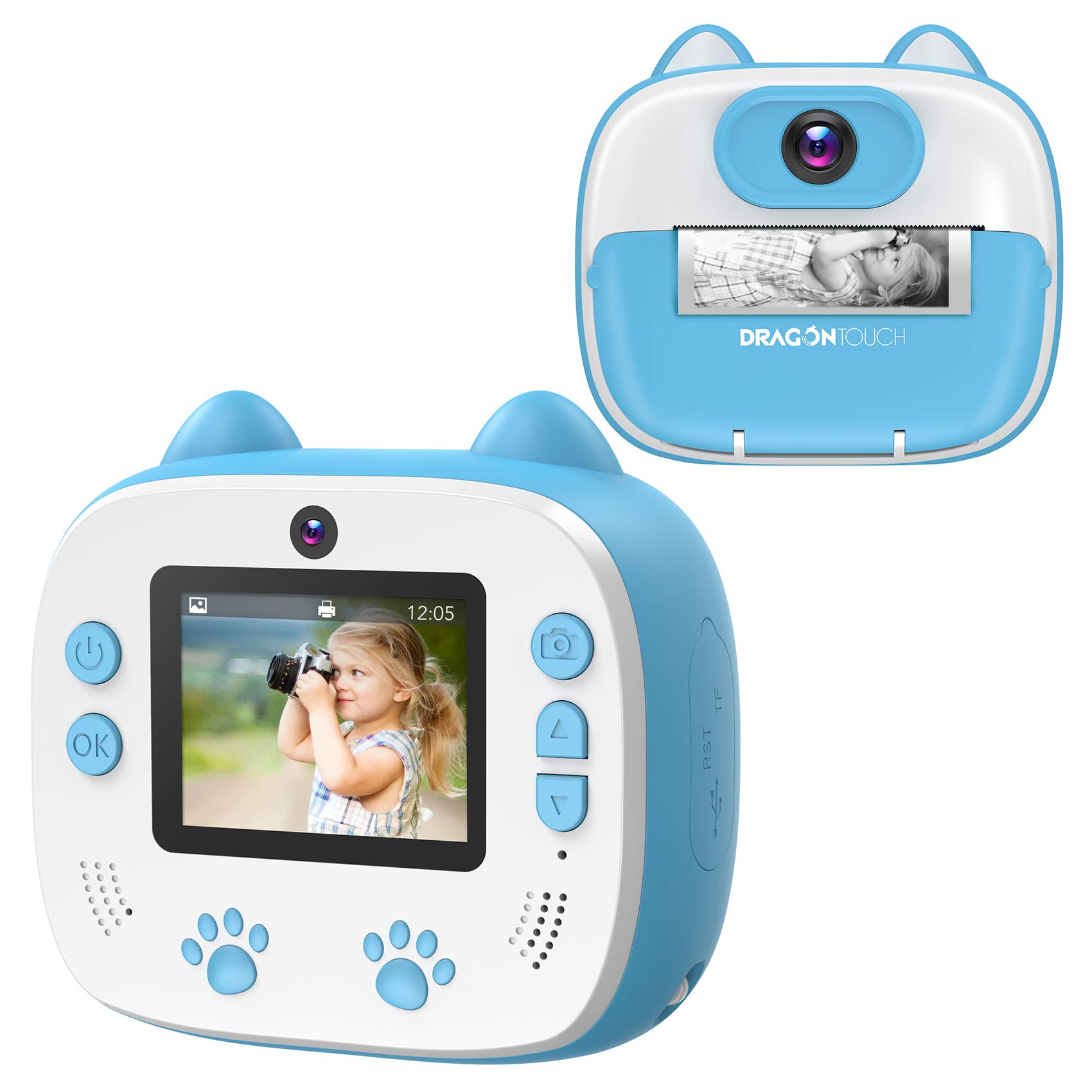- Dragon Touch InstantFun Instant Print Camera for Kids, Zero Ink Toy Camera with Print Paper, Cartoon Sticker, Color Pencils, Portable Digital Creative Print Camera for Boys and Girls - Blue costs $59.99