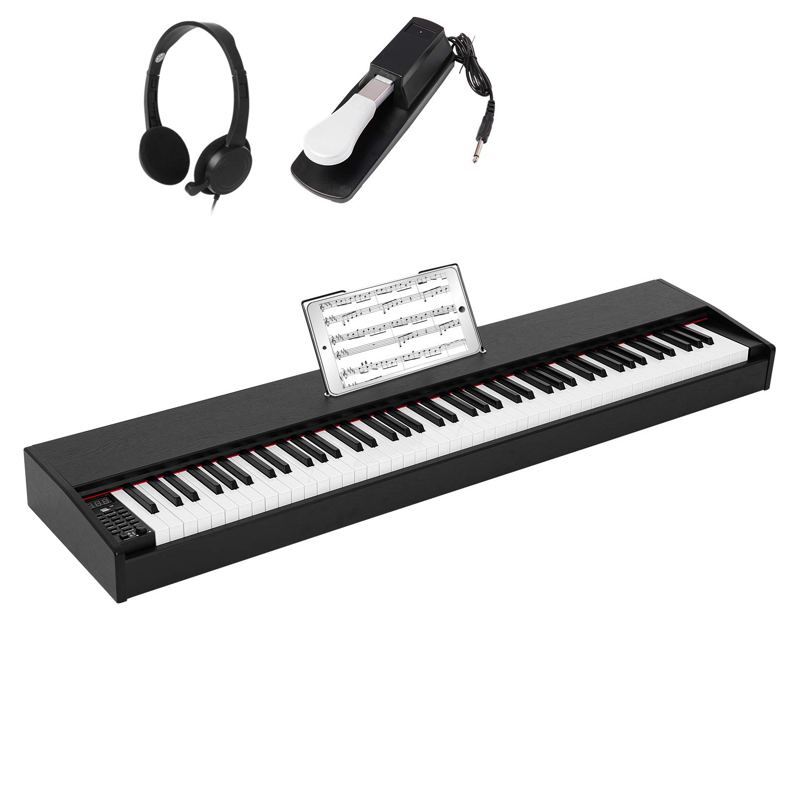 - 【DUAL EARPHONE DESIGN】- Designed with two earphone jacks,which can allow two people to enjoy the wonderful sound of piano at the same time.In addition, you don't disturb other people's rest when you play with headphones on. ( Headphone is included )
