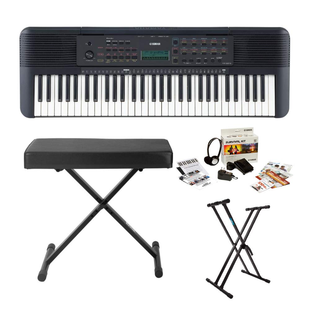 - BUNDLE INCLUDES: Yamaha PSRE273 61-Key Portable Keyboard (Black), Knox Gear Adjustable X Style Keyboard Bench, Yamaha Electronic Keyboard Survival Kit (SK B2), and Knox Gear Adjustable Double X Keyboard Stand