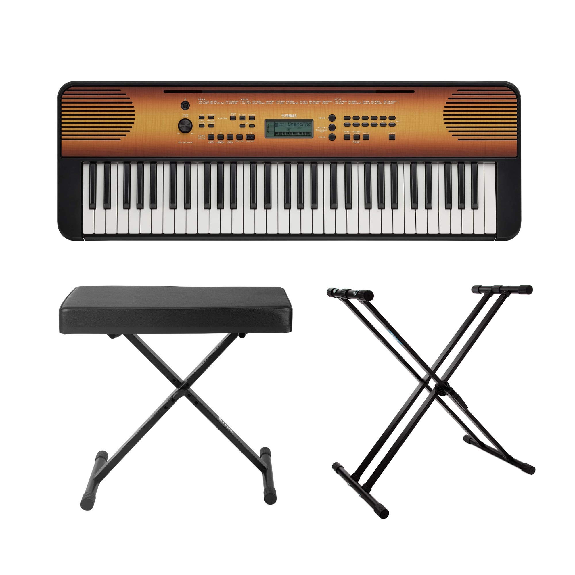 - BUNDLE INCLUDES: Yamaha PSRE360MA 61-Key Portable Keyboard,Power Supply, Adjustable X Style Keyboard Bench, and Adjustable Double X Keyboard Stand